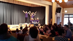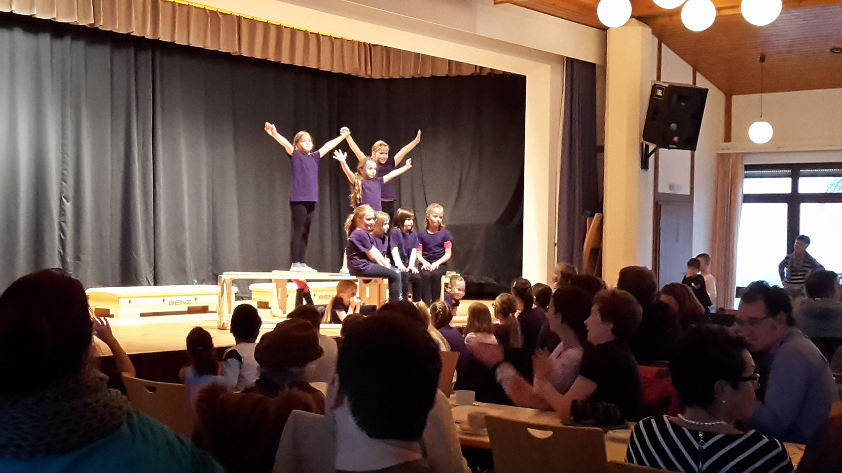 Um 15 Uhr begannen unsere Kindergruppen mit ihren vielseitigen Aufführungen. Nach der Begrüßung durch unsere 1. Vorsitzende Lisa Schatz, führte unsere Jugendvorständin Theresa Bott durch das Bühnenprogramm. Insgesamt zeigten neun Gruppen ihr Können: die Kids- und Fun-Dance Gruppen unter der Leitung von Sabine Seibold und Lisa Schatz, das Vorschulturnen der Buben und das Eltern-Kind-Turnen unter der Leitung von Susanne Harig-Wagner, das Grundschul-Mädchenturnen unter der Leitung von Theresa Bott, das Vorschulturnen der Mädchen unter der Leitung von Christine Barth, das Geräteturnen unter der Leitung von Nancy Pruditsch und Bruno Jaquets Gruppe vom Bubenturnen. Zum Abschluss standen noch mal alle Gruppen gemeinsam auf der Bühne, um ein kleines Präsent in Form eines Adventskalenders entgegenzunehmen.